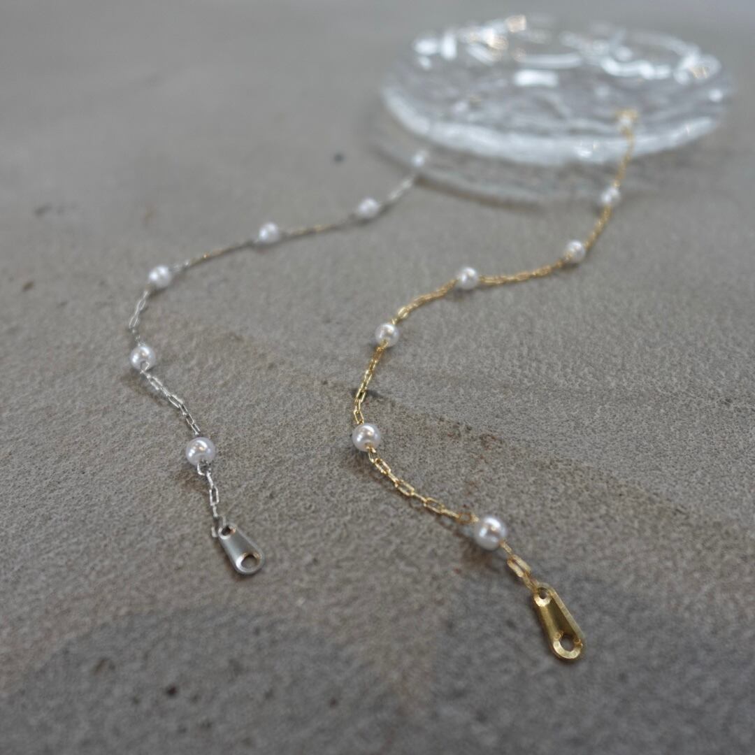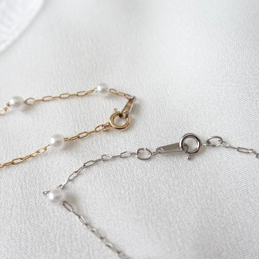 幅が約1.2mm~約1.4mmのチェーンにパールが付いたデザインチェーンです。